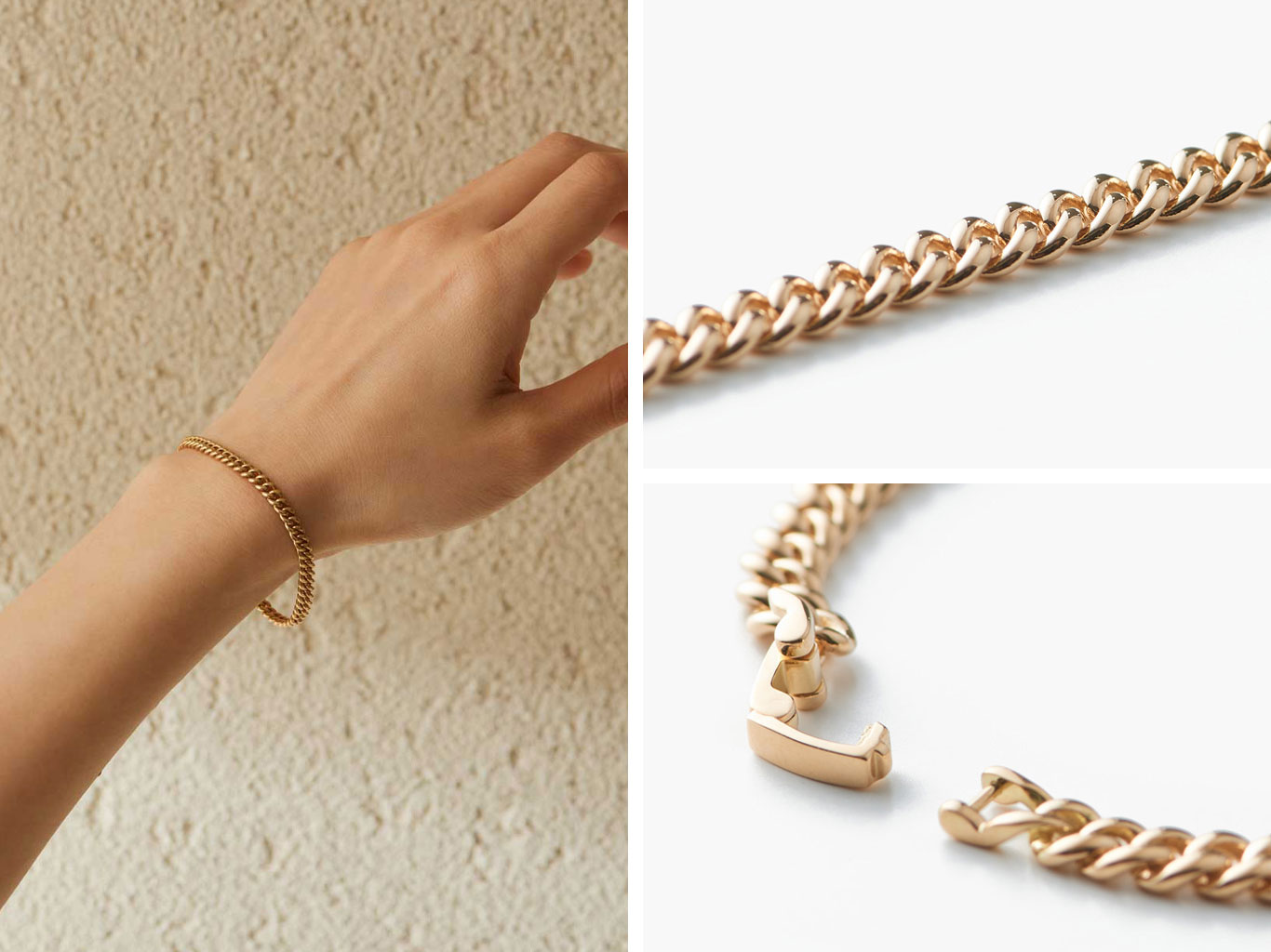 細部まで追求されたチェーンの構造美、手元の動きに寄り添う控えめな輝き。