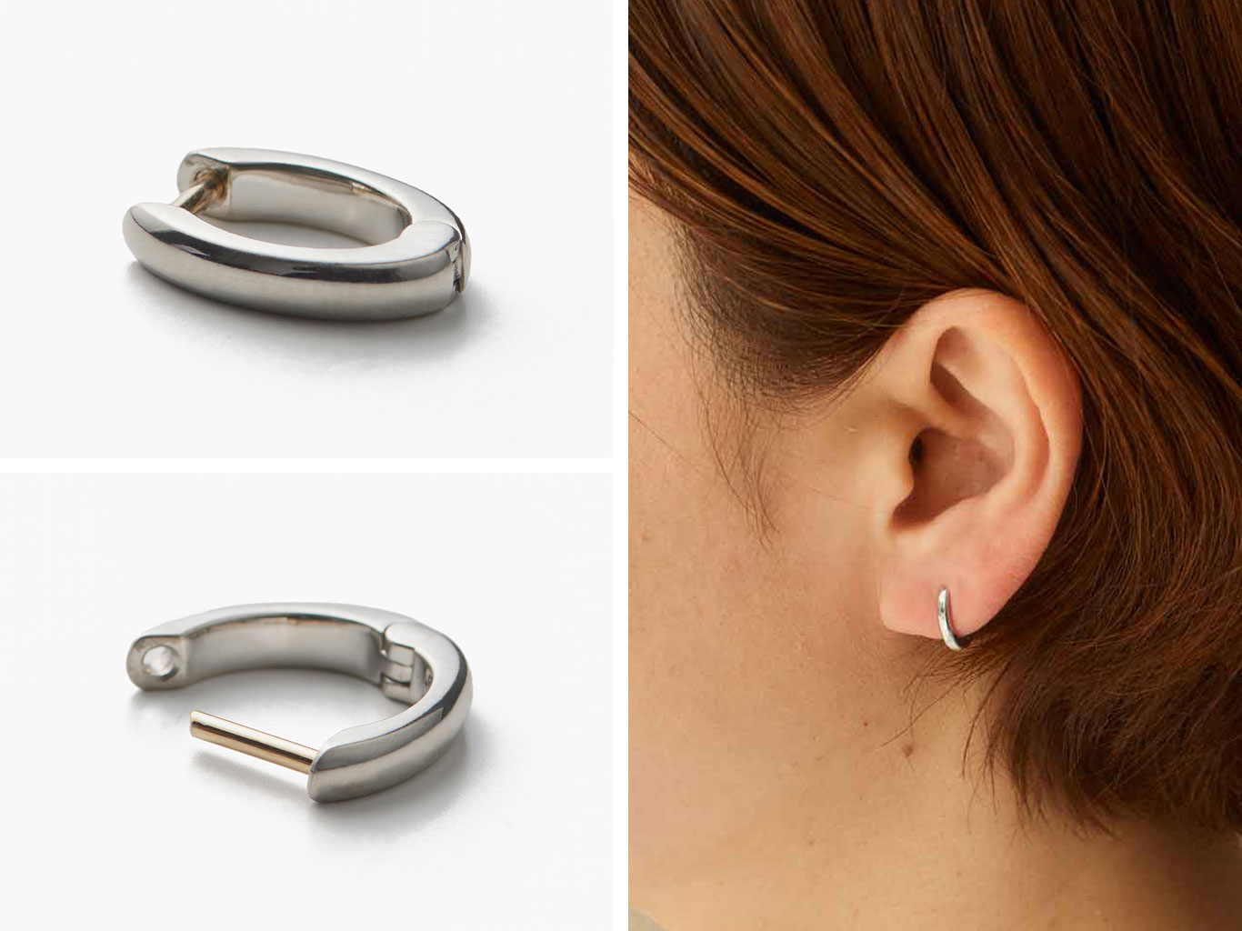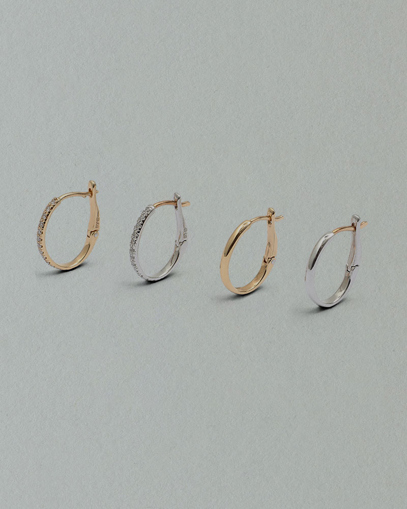 〈Mini Arc Hoop〉シリーズは、ローマ建築のアーチに着想を得た、構築的で洗練されたカーブが印象的なフープピアス。着用時は耳たぶにピタリと沿い、凛としたミニマルさと上品さが共存する仕上がりです。およそ1cmの小ぶりなサイズ感ながら、地金の美しさと造形の緻密さが際立ち、日常にも特別な場面にも静かな存在感をもたらします。