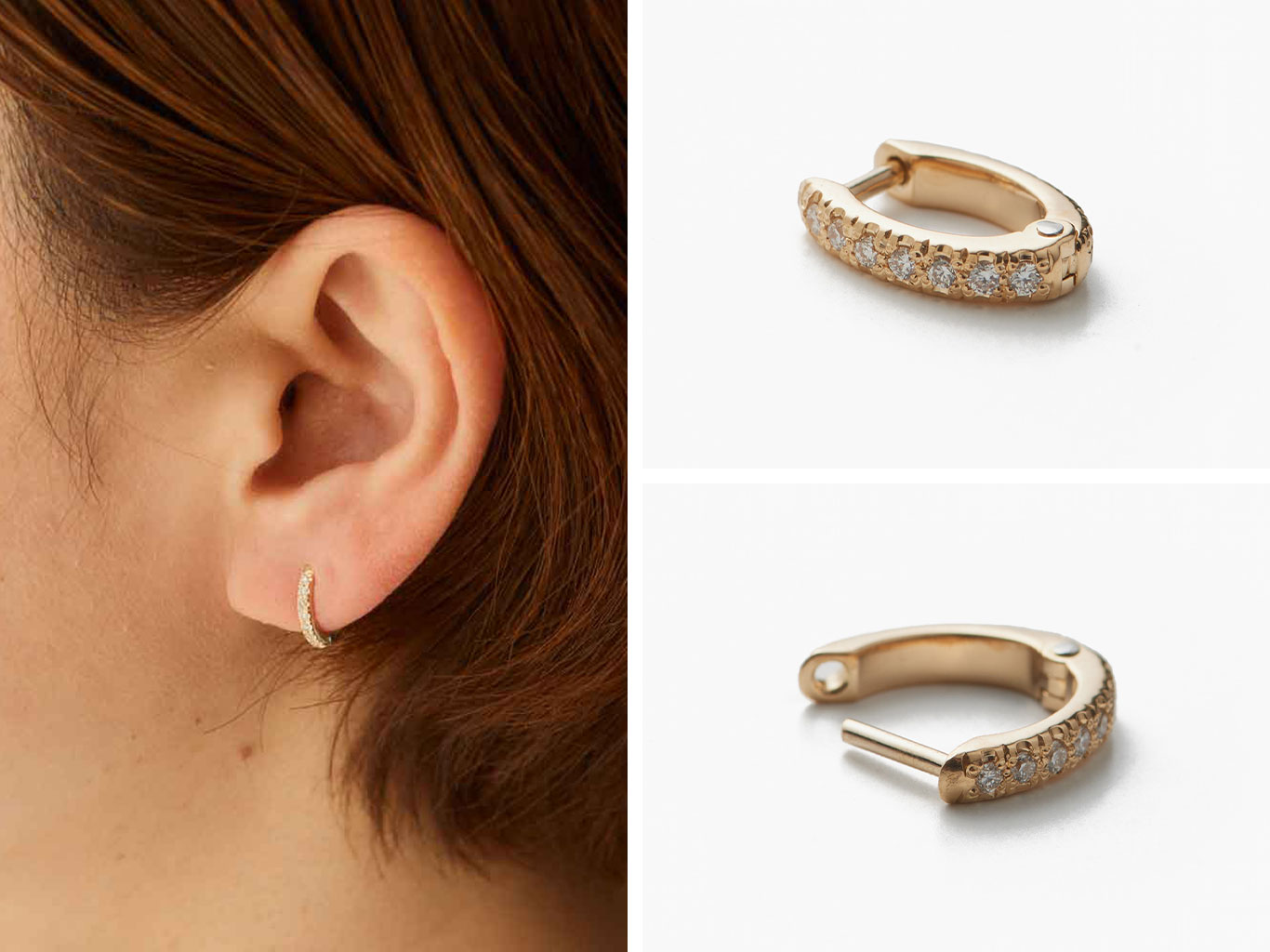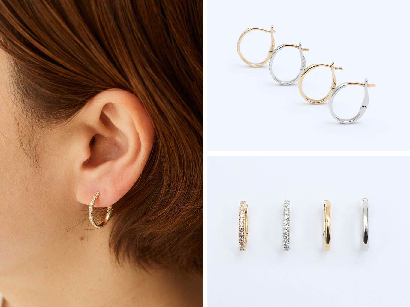 素材は18Kイエローゴールドとプラチナの2種、ダイヤモンドの有無を含む全6モデル展開。片耳ごとの販売で、左右異なる組み合わせや重ねづけも自在に楽しめる自由度も魅力です。