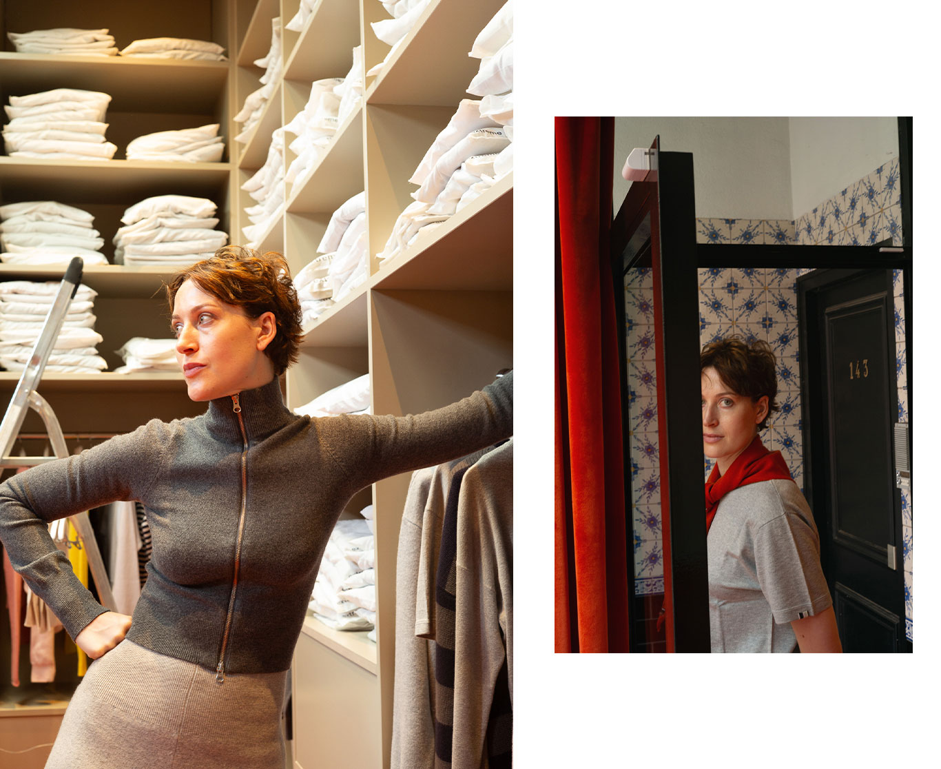 今回モデルとして登場したのは、extreme cashmere B.V.のヘッド・オブ・セールスであるNisse van Rossumです。彼女がまとうニットウエアは、この街の空気と深く共鳴し、アムステルダムのライフスタイルそのものを映し出しています。